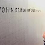 Dokumentationszenrum Datum 22.03.2007 Besucher des Dokumentationszenrums Gedenkstätte Grafeneck vor einer historischen Aufnahme der »Aktion T4«, die in Stetten im Remstal aufgenommen wurde.