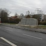 in Beton gegossener Bus in der ehemaligen Zufahrt