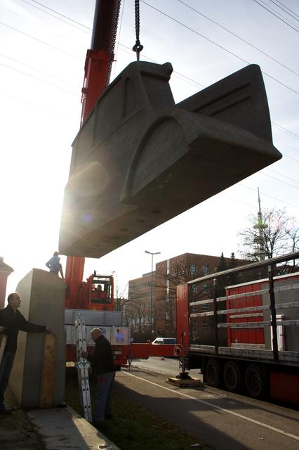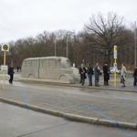 Ankunft des Denkmal-Transportes vor der Berliner Philharmonie