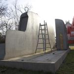 Der zweite 70 Tonnen schwere Beton-Bus in Ravensburg, Gartenstraße.