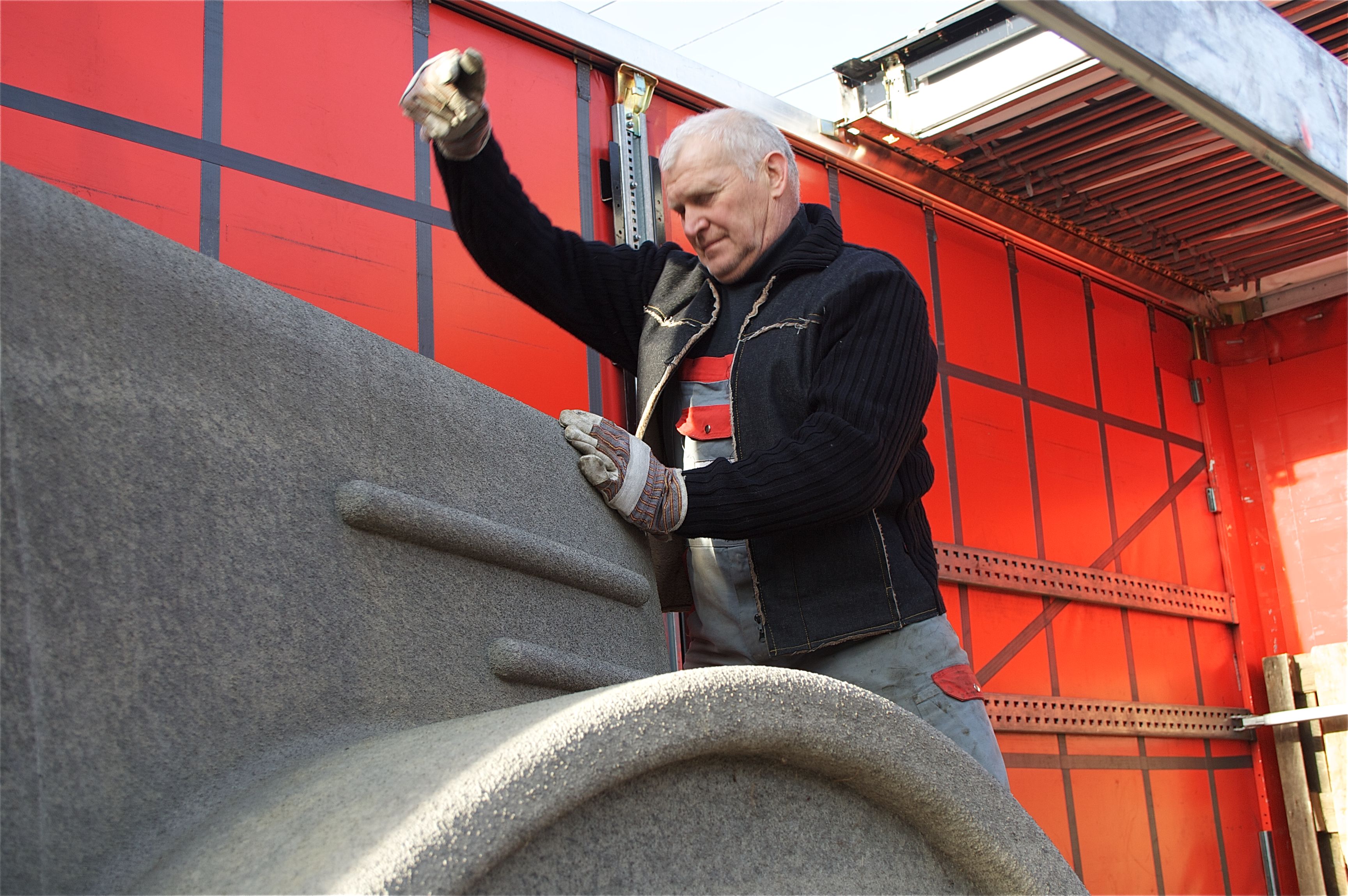 Abbau des Denkmalbusses in der Gartenstraße Ravensburg am 15. Januar 2008 - Alle Teile sind verladen - Zurück bleibt die leere Sockelplatte - Zurück bleibt Leere - Der Denkmalsverlust - Zurück bleibt auch die Informationstafel -