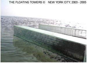 FLOATING TOWERS 1 Datum 18.01.2007 »The Floating Towers ©« floating in the Hudson River, the East River and the New York Bay.